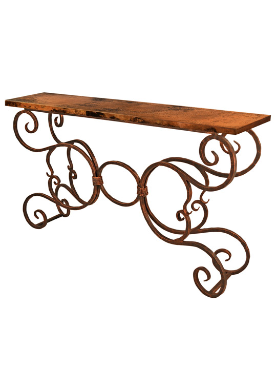 The Iron Shoppe iron tables are beautifully handcrafted forged iron pieces available in styles like dining, console, bistro, and accent tables. Tops come in hammered copper, marble, granite, distressed pine or glass, offering timeless design and custom sizing for any space.